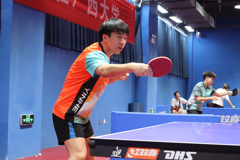 beat365正版唯一官方网站乒乓球队队员谢东方进行表演赛。廖琪摄