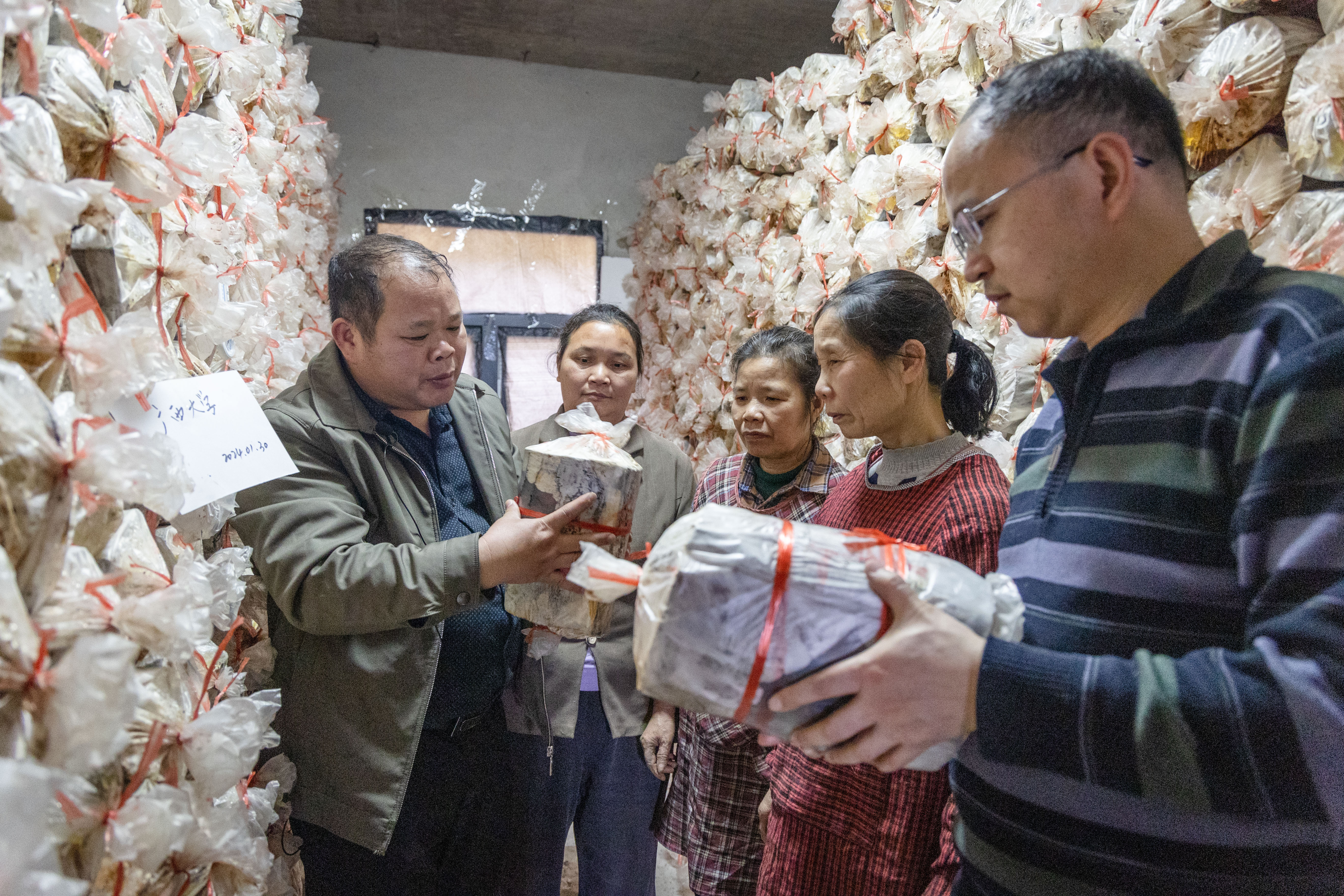 “在桂北,菌棒的制作时间是头年9月到次年3月上旬,时间一定得抓紧。”覃培升说,枫树木棒经过切段、开缝、打磨、套袋、杀菌等多道工序后,还需要接种、培养、炼棒才能进行种植。说着,他到菌棒培育室一间一间查看培养情况。