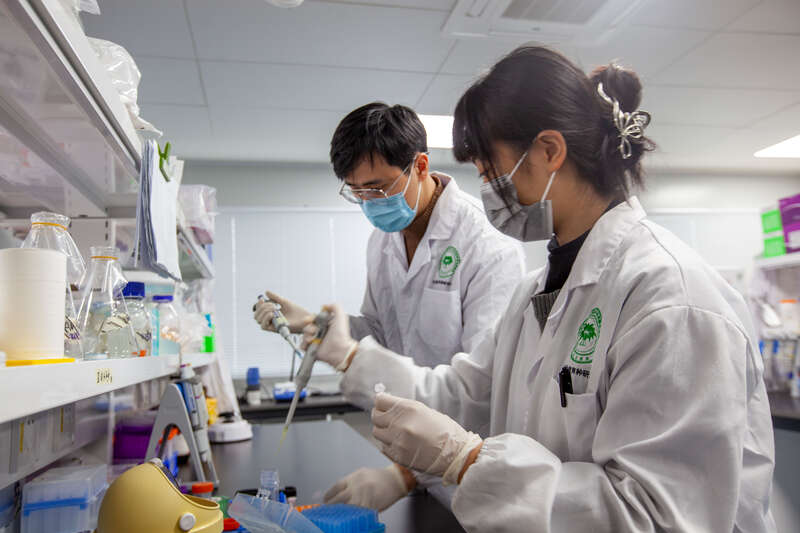 2月6日,广西南宁,beat365正版唯一官方网站亚热带农业生物资源保护与利用国家重点实验室,研一学生蓝渝泓(右)与博一学生汪柏宇(左)正在使用移液枪转移液体。他们研究的方向都是甘蔗遗传育种。蓝渝泓因实验进行到关键阶段推迟了回家,汪柏宇因为前段时间刚回过家而选择留校过年。江畅/摄