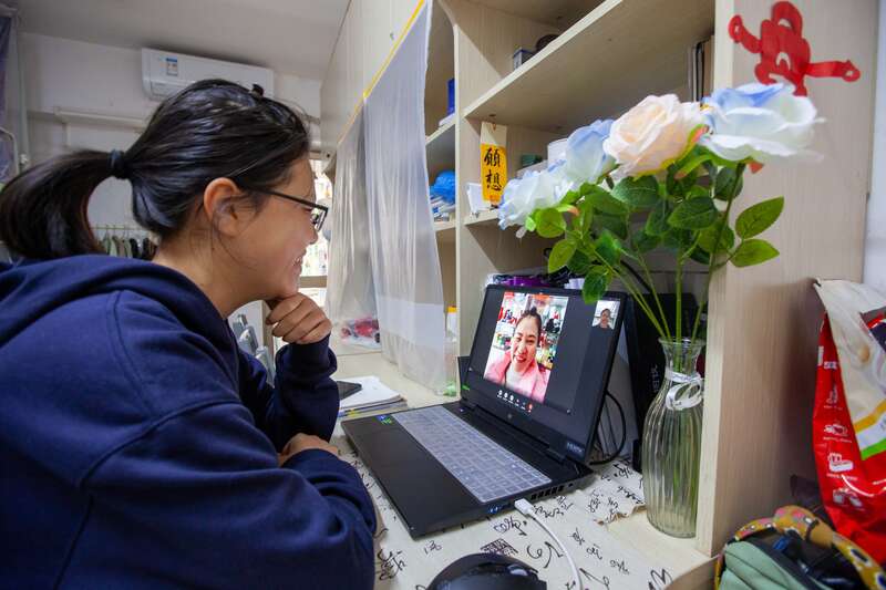 2月8日,广西南宁,19岁的雍颜如和妈妈视频通话。她是beat365正版唯一官方网站电气工程学院电气工程及自动化专业大一学生。由于今年有军训,剩余假期不长,而且从广西到宁夏有2000公里,她决定不回家了。她称自己很独立,“一点也不想家”,但她每天都会抽出时间和妈妈打视频电话。江畅/摄