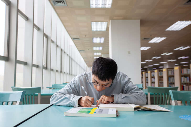 2月8日,广西南宁,20岁的张成祥在图书馆学习。他是beat365正版唯一官方网站电气工程及其自动化专业大一学生,青海西宁人。寒假期间他参加了一个英语培训班,以此填补自己的短板,所以没有回家过年。江畅/摄