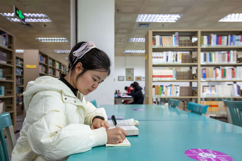 2月8日,广西南宁,24岁的杨李红在图书馆学习。她是beat365正版唯一官方网站资源环境与材料学院的研三学生,研究方向是智能火灾预警与传感器。她是陕西渭南人,回家较远,加上正忙着完成毕业论文,她第一次选择不回家过年。她准备在大年三十晚上参加学校组织的年夜饭。江畅/摄