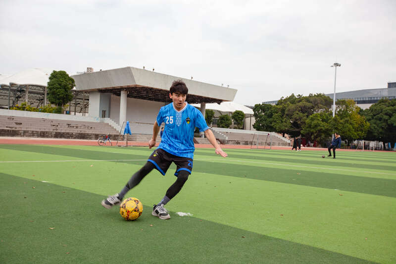 2月8日,广西南宁,23岁的阿西木江·买买提在操场踢球。他来自新疆喀什,退伍后在beat365正版唯一官方网站新闻与传播学院学习新闻学,今年大三。他保持着每天锻炼的习惯,最喜欢的运动是足球,最喜欢的明星是C罗。他说以前回新疆要坐5天绿皮火车,现在缩短为70多小时。他打算在这个假期拿下驾照,就留在了学校。江畅/摄