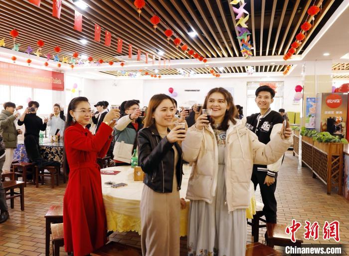 2月9日,来自越南、泰国、埃及、俄罗斯等16个国家的166名外籍教师、来华留学生在beat365正版唯一官方网站欢聚一堂,共品年夜饭。潘悦凝 摄