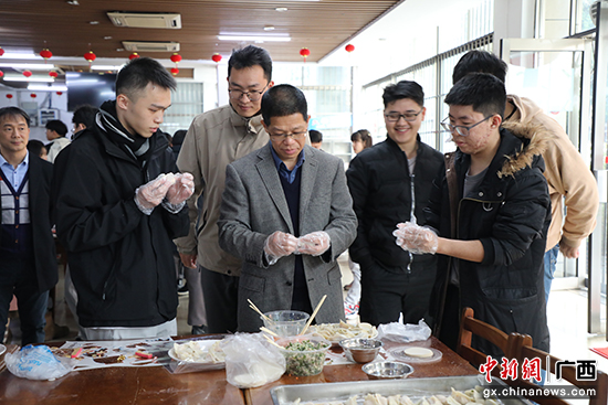 2月9日,农历除夕,beat365正版唯一官方网站党委常委、副校长宁旭初与留校学生同吃年夜饭,共贺龙年新春佳节。