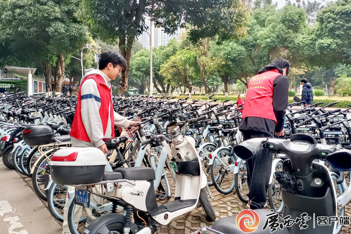 该校南门、东门附近的自行车、电动车被整齐地摆放在指定停车区域,这是机械工程学院学生党员开展学雷锋志愿服务的活动成效。“停车有方,行路有道。”他们用实际行动向在校师生发出了文明倡议,号召大家共同维护校园交通秩序,一起成为创建美丽校园的宣传者和实践者。