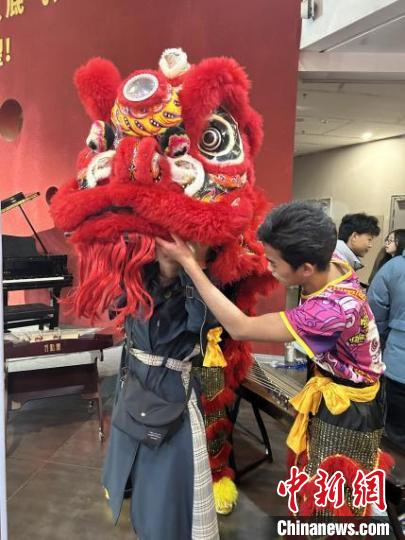 “舞狮,又称‘狮子舞’‘狮灯’等,舞狮文化历史久远,是维系华人世界的重要纽带,也是世界认识中华文化的生动样本。”表演者杨青山详细地为大家介绍舞狮文化并演示醒狮的操作方法,他热情地邀请外国青年尝试。