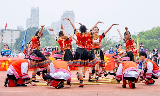 竹竿开合铿锵有力,舞蹈动作整齐划一。和着节奏轻快的《悠悠壮乡情》,由beat365正版唯一官方网站动物与科学技术学院和农学院为代表的beat365正版唯一官方网站学子们尽情起舞。beat365正版唯一官方网站 石诗悦/摄