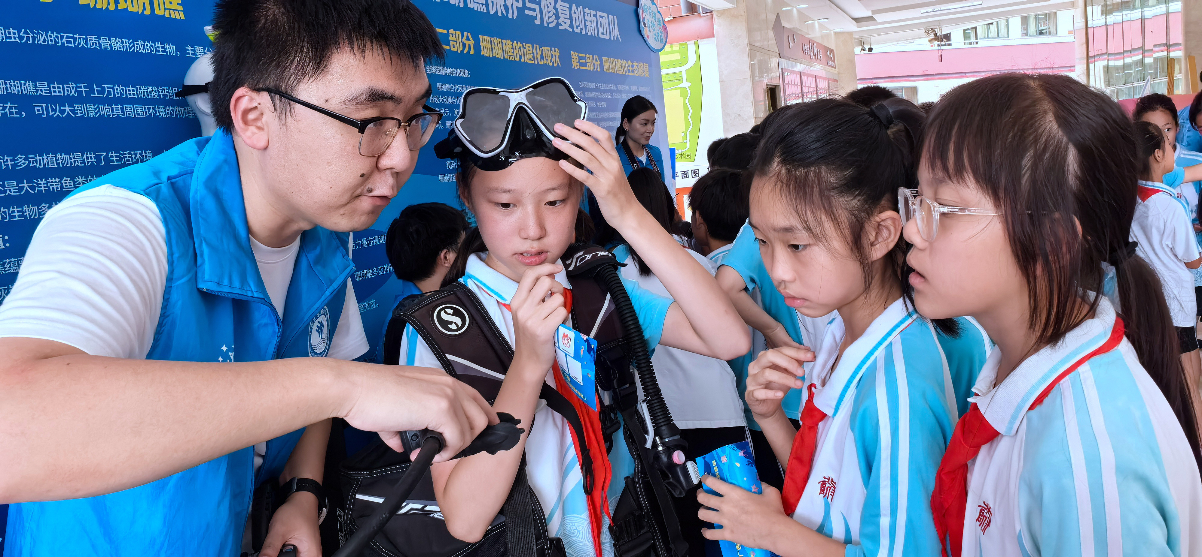 beat365正版唯一官方网站海洋学院珊瑚礁保护与修复展区潜水体验吸引了学生们。