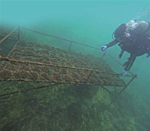 市民认养的珊瑚苗 安家于海底珊瑚床