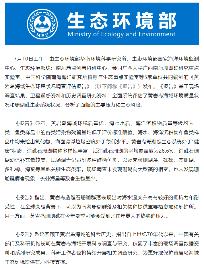上一条:新华社消息|《黄岩岛海域生态环境状况调查评估报告》发布
