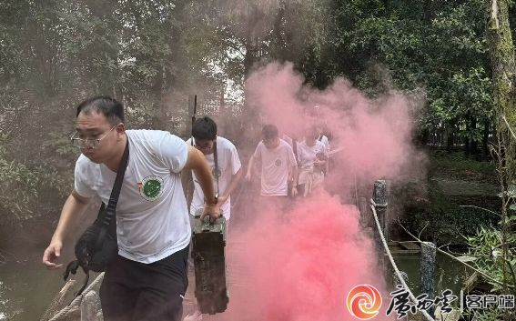 宣讲团成员体验湘江战役渡江场景。