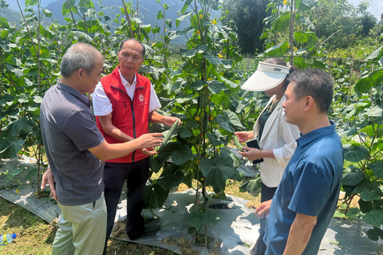 广西乡村科技特派员到基地指导黄瓜生产。陈迈摄