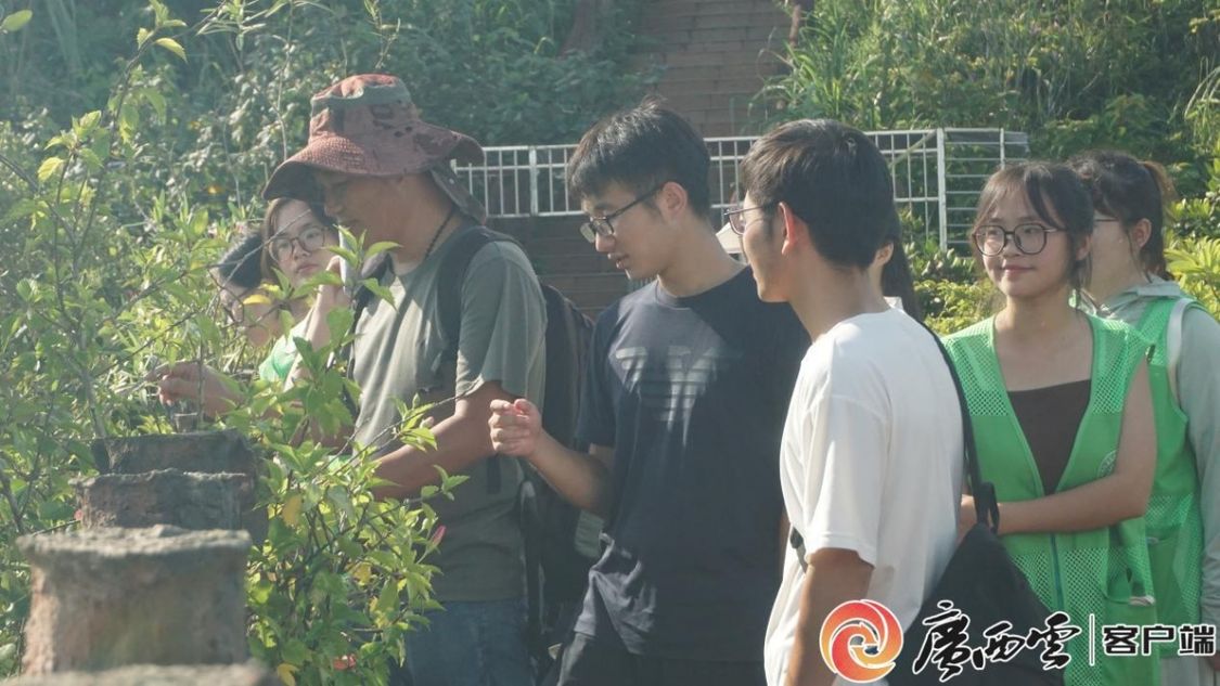 实践团同学鉴定红树植物种类。何恺琦 摄