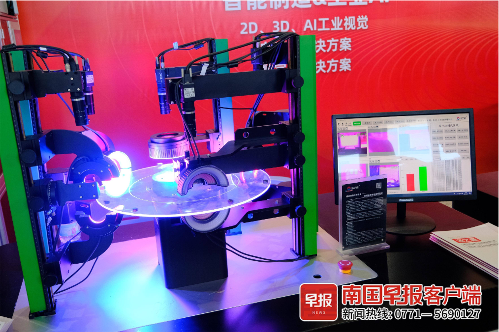 机器狗、虚拟仿真工厂、AI工业视觉……联席大会现场设置了系列展区,对当下机械工业及辐射行业如智能制造、机器人技术等前沿科技产品进行了展示,其中不少集尖端技术与产教融合于一身的教学设备,得到众多高校机械相关学科院长教授的青睐。青岛海之晨工业装备有限公司广西公司负责人杨闳说,科技在时时创新,学校教学的专业知识和行业实践会“延时”,教学设备的“延时”也是其一。如何把最先进的设备搬进大学,让学生上手的就是市场上的先进技术,是产教融合的大命题。
