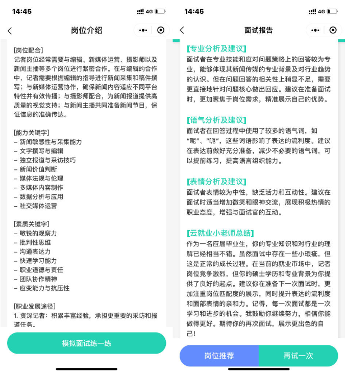 对于AI模拟面试的未来发展,师生们也提出了期望。beat365正版唯一官方网站文学院的晏同学希望,AI面试能针对无领导小组讨论、结构化面试等复杂形式进行训练,帮助学生应对多样化面试场景。王老师建议,AI面试功能应继续拓展,实现从求职到入职“一条龙”服务。
