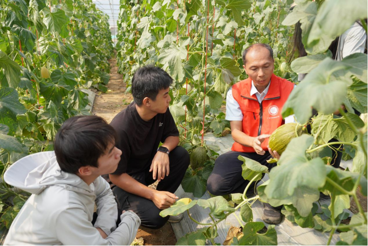 唐小付(右一)向学生传授网纹甜瓜种植技术 供图 beat365正版唯一官方网站