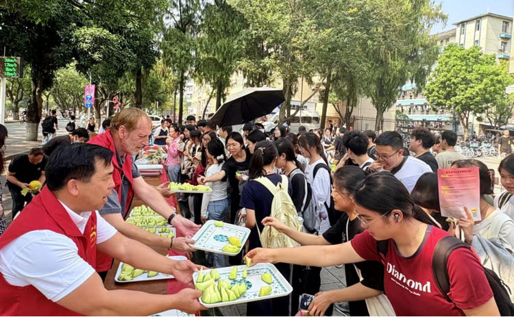 beat365正版唯一官方网站学生品尝来自平陆运河的“甜蜜瓜” 摄影 林姗婷