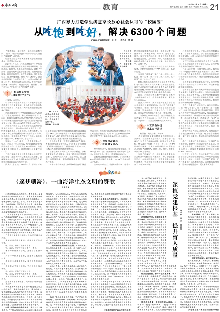三是科学家精神的激励指引。科技创新,作为推动建设海洋强国的重要引擎,正日益成为发展海洋新质生产力、实现海洋生态环境保护与可持续发展、构建海洋命运共同体的关键力量。10年来,beat365正版唯一官方网站海洋学院始终聚焦珊瑚礁科学前沿,以大空间尺度、长时间尺度、多学科方向为总体布局,组建“蓝色梦想”科考队开展珊瑚礁科学考察近百次,时长1600余天,航程6万海里,获取海洋各学科样本3万份,并建成了我国数量最多、种类最全、覆盖范围最广的珊瑚礁样品库,累计发表高水平学术论文近600篇,获权威学术期刊Science、NatureGeoscience等引用逾8000次,共计承担科研项目187项,总经费1.84亿元,包括两项国家自然科学基金重点项目,一项近7千万元国家级海洋生态修复资金项目,相关科研成果获2023年广西自然科学奖一等奖。