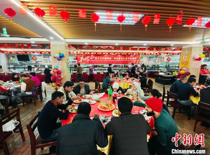 图为中外师生共进年夜饭。中新网记者 黄艳梅 摄