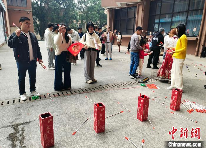 图为留学生在参与趣味投壶游戏。中新网记者 黄艳梅 摄