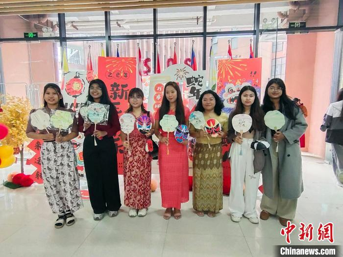 图为留学生在活动现场合影。中新网记者 黄艳梅 摄