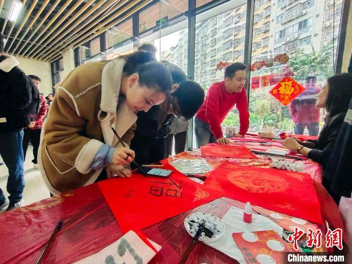 图为留学生在书写福字。中新网记者 黄艳梅 摄
