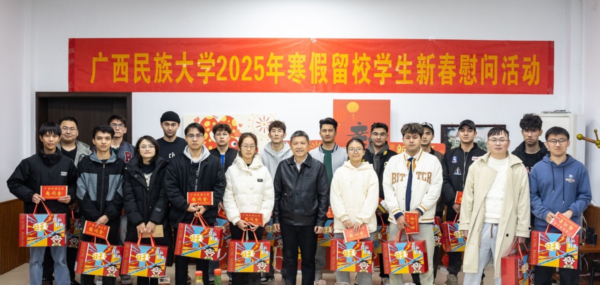 今年寒假,广西民族大学有不少学生选择留校过年。为了让留校学子们感受到家的温暖,学校精心策划并准备了新春慰问活动。该校为留校学生发放了春节慰问大礼包,礼包内装有丰富的年货,寓意着新的一年平安顺遂、幸福美满,同学们接过礼包,脸上洋溢着幸福的笑容。