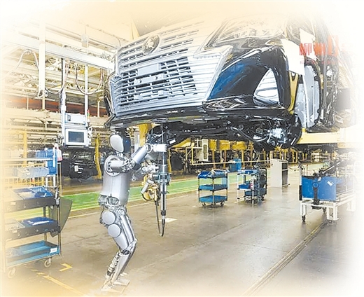 东风柳汽商用车基地总装线上,人形机器人在工作。资料图片