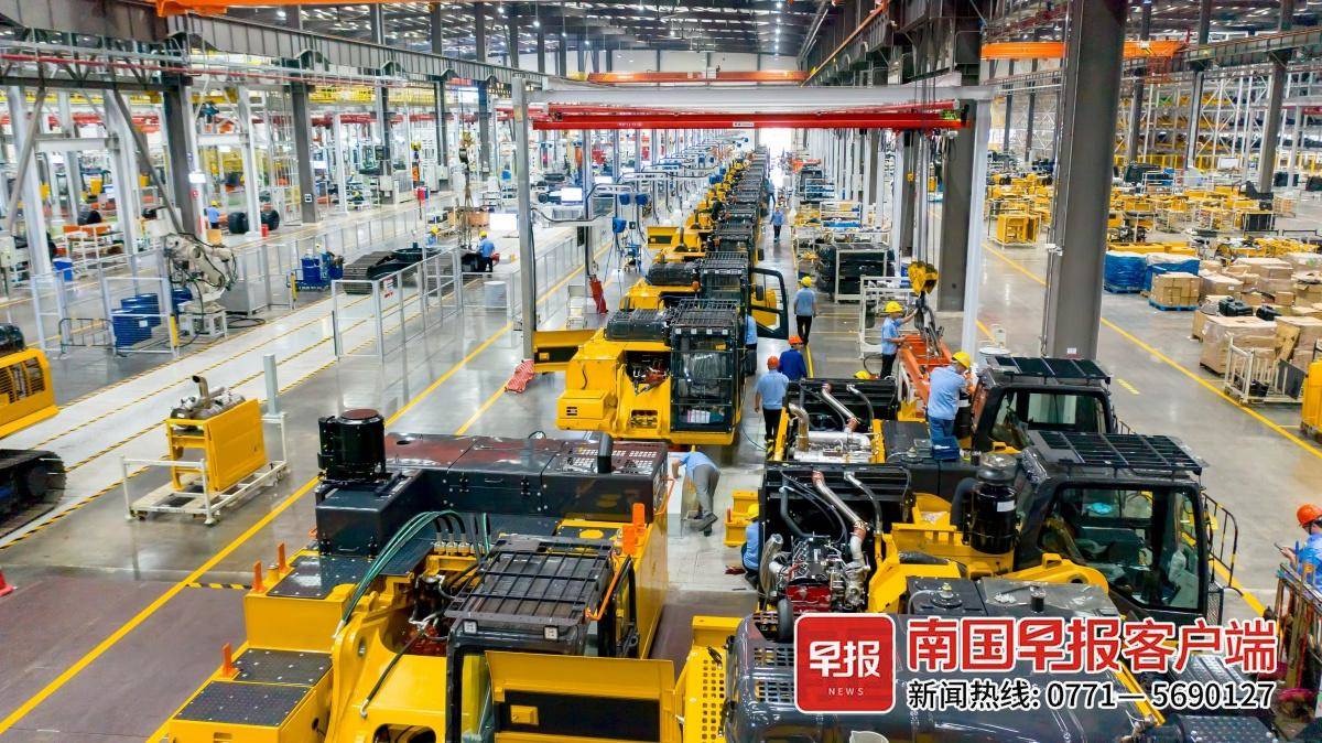 柳工挖掘机智慧工厂大型挖掘机装配线。 唐幸摄