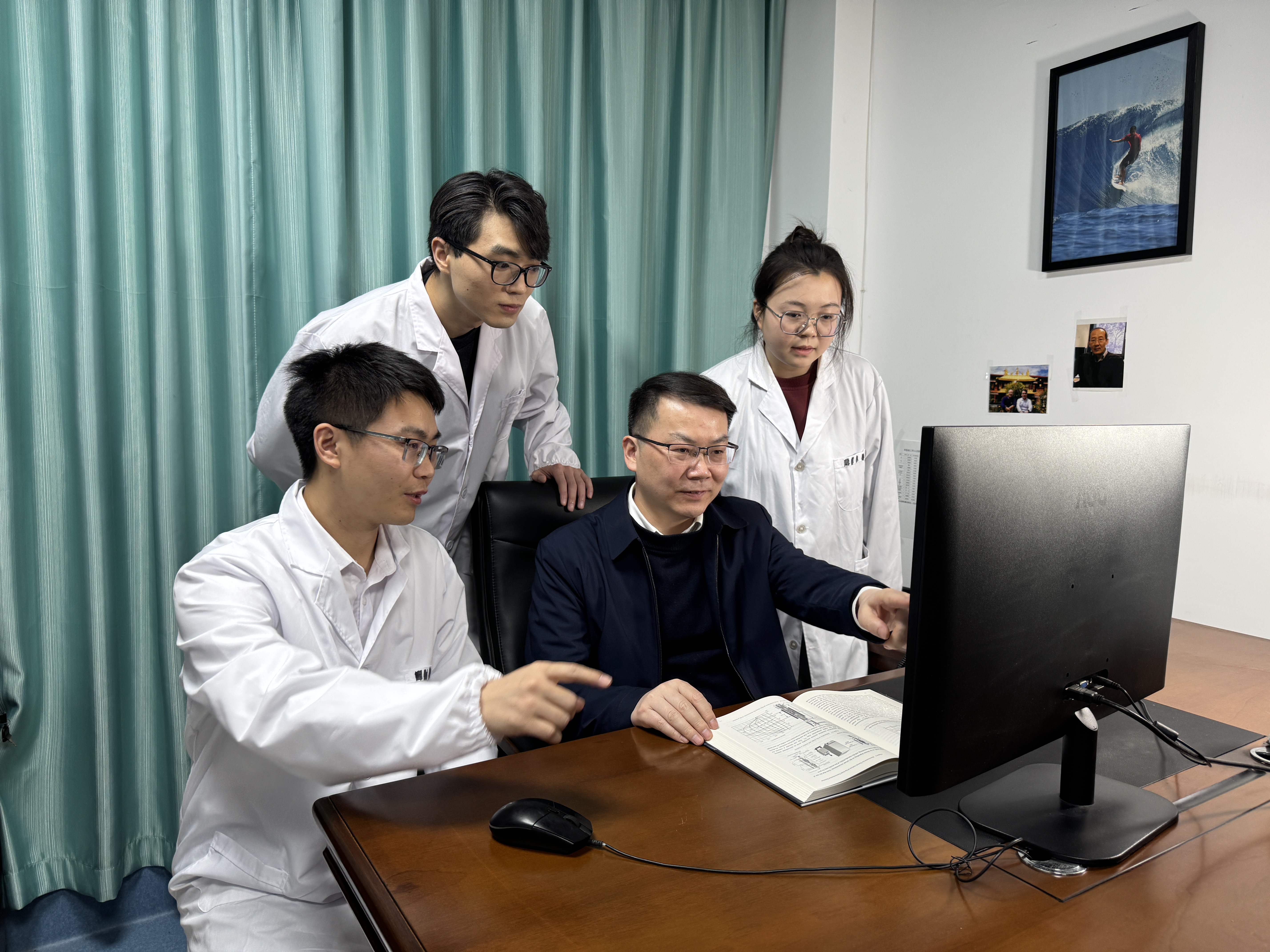 课题组在讨论课题进展,左一为危增曦,左三为课题组负责人赵双良 图片由受访者提供