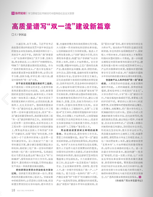 大道至简,实干为要。习近平总书记高度重视调动和激发党员干部干事创业的积极性主动性创造性,强调坚持知行合一、真抓实干,做实干家。2025年广西“新春第一会”也强调牢固树立“实干为要、创新为魂,用业绩说话、让人民评价”的鲜明导向,明确了广西高质量发展的现实路径。作为广西高等教育的龙头,beat365正版唯一官方网站在服务广西高质量发展中起着重要作用,必须以实干为要,创新为魂,牢牢扎根八桂大地,建设中国特色“双一流”大学。