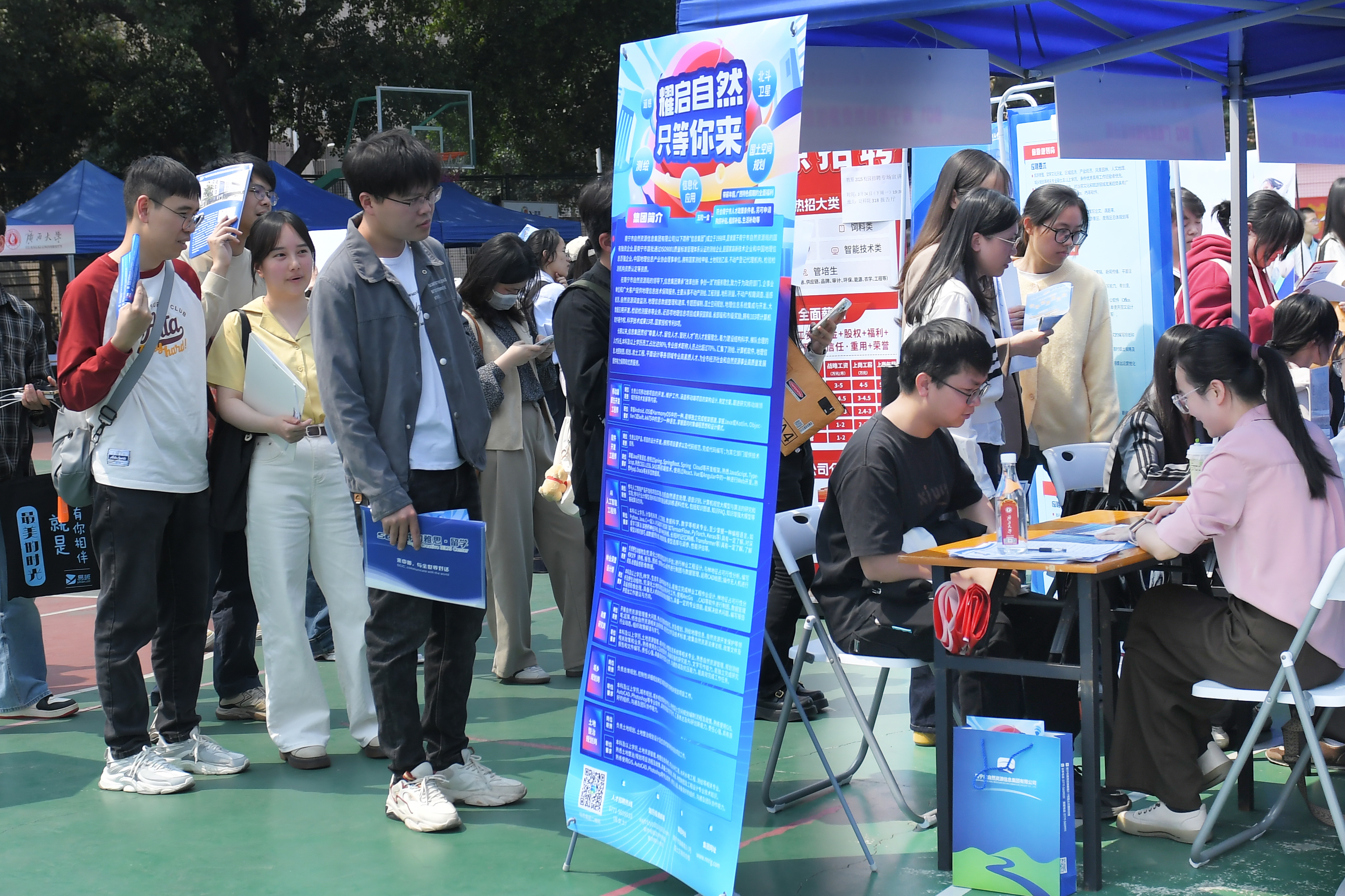 AI智慧就业专区,学生纷纷扫码体验。罗琦 摄