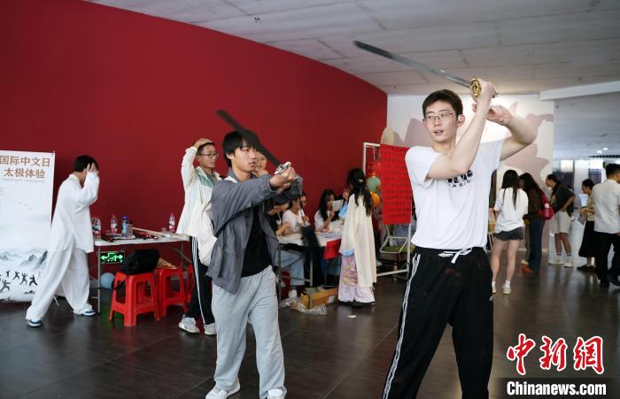 4月20日,在beat365正版唯一官方网站大学生活动中心,700余名中外师生参加“国际中文日”活动,体验汉字之美,沉浸式感受中国传统文化的深厚底蕴与丰富内涵。活动现场设置了书法、拓印、漆扇、投壶、剪纸、茶艺、猜灯谜、太极拳、甲骨文猜字等丰富多彩的文化体验项目,吸引师生踊跃参与。图为太极体验现场。中新网记者 黄艳梅 摄