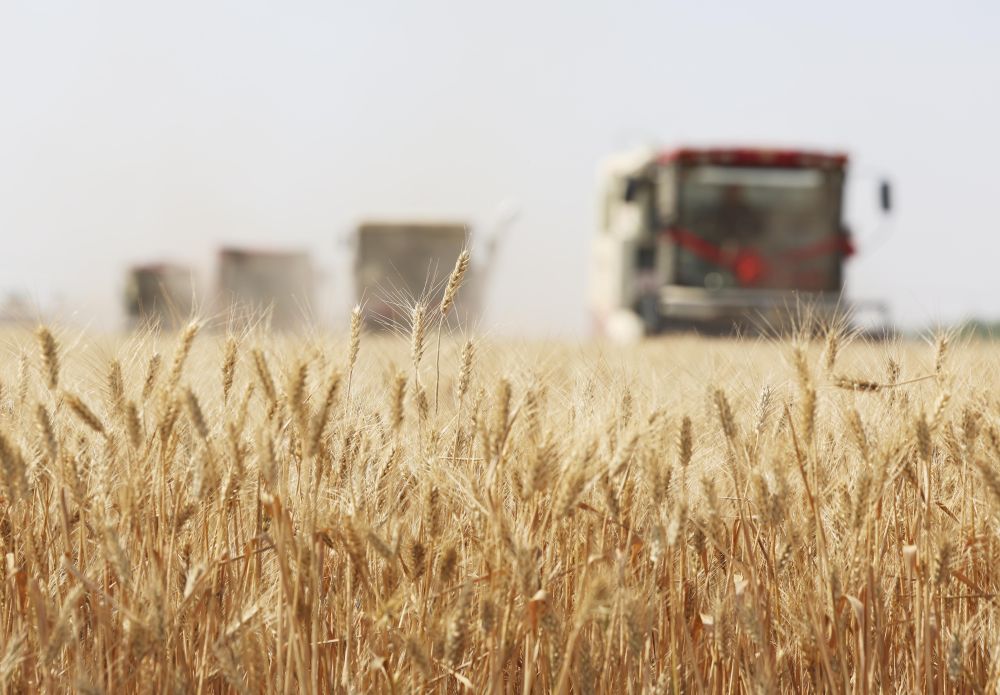 6月10日,河北省石家庄市栾城区柳林屯乡东牛村村民驾驶农机收割小麦。新华社发(梁子栋摄)
