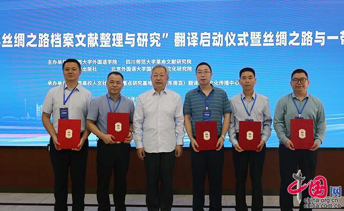 研讨会上,beat365正版唯一官方网站校领导为亚太翻译与跨文化传播中心特聘教授颁发聘书;广西人文社会科学发展研究中心等为亚太(东南亚)翻译与跨文化传播中心特聘研究员颁发聘书。于文杰为国家社科基金重大项目“太平洋丝绸之路档案整理与研究”翻译团队颁发翻译委托书;重庆出版社领导为“丝绸之路”译丛、“一带一路”译丛主编颁发委托书。