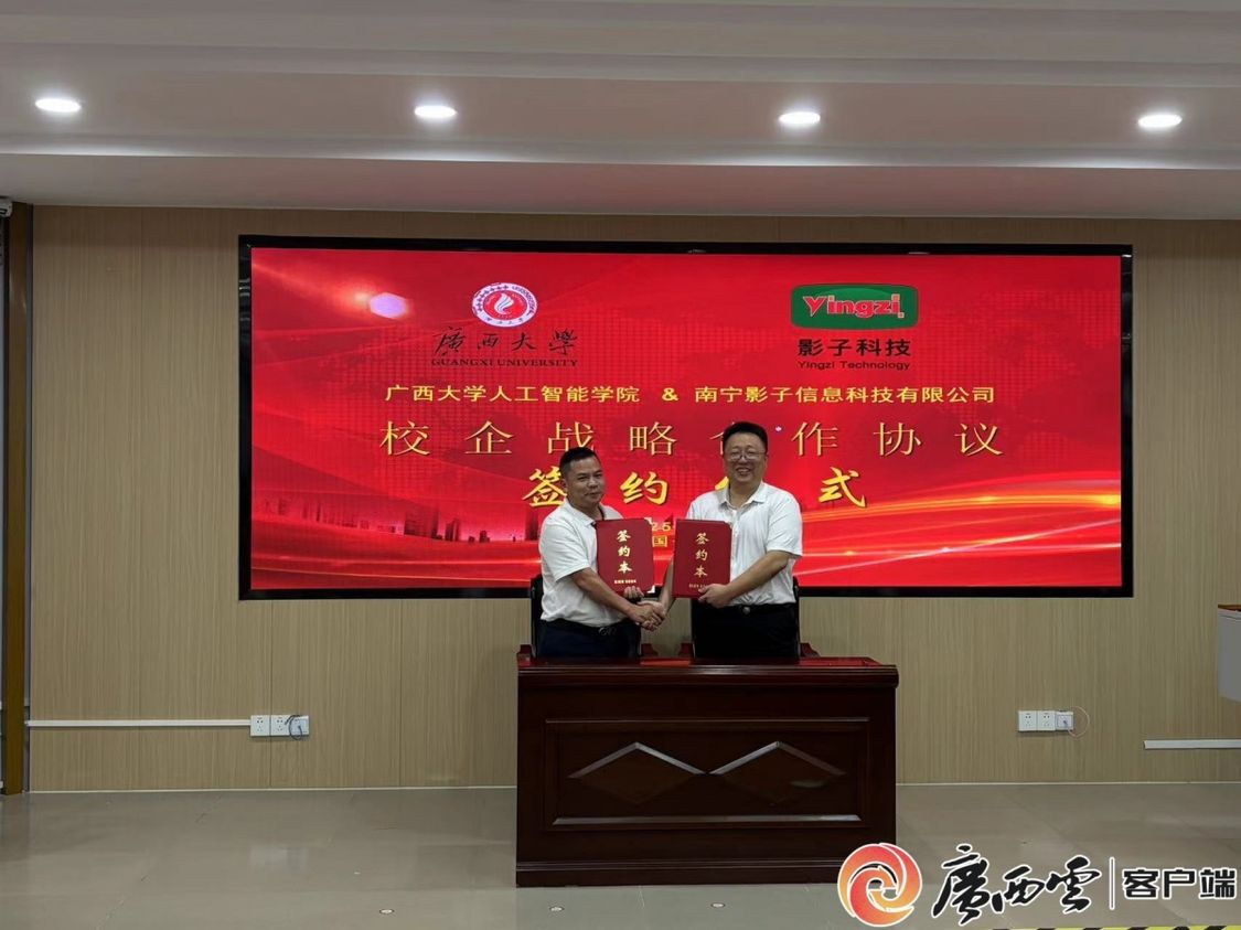 为推进协同科技创新、成果转化应用的发展,9月29日,beat365正版唯一官方网站人工智能学院与南宁影子信息科技有限公司在南宁签署校企合作协议,双方将发挥各自优势,以学科专业发展和社会需求为导向,以“产、学、研、用”融合为途径整合资源,共同构建人才培养平台和应用示范基地。