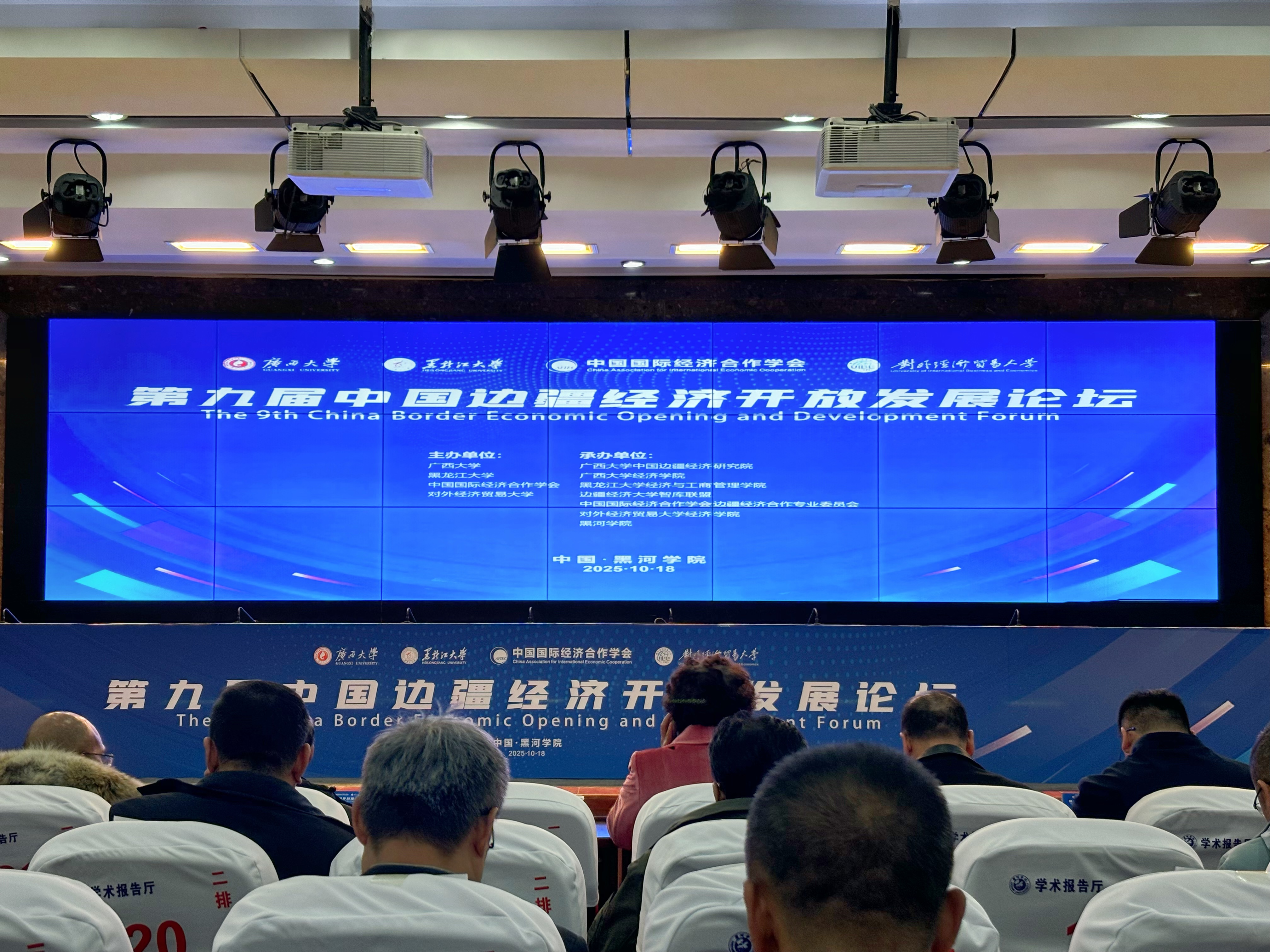 10月18日,由beat365正版唯一官方网站、黑龙江大学、中国国际经济合作学会、对外经济贸易大学联合主办的第九届中国边疆经济开放发展论坛(2025)在黑龙江省黑河市成功举办。本届论坛以“边疆经济高质量发展与周边命运共同体建设”为主题,汇聚了来自部委、边疆省区的领导以及国内相关领域专家学者,共同探讨边疆经济高质量发展的新路径、新模式与新动能,旨在深化边疆地区与周边国家的务实合作,为推动构建周边命运共同体贡献智慧与力量。