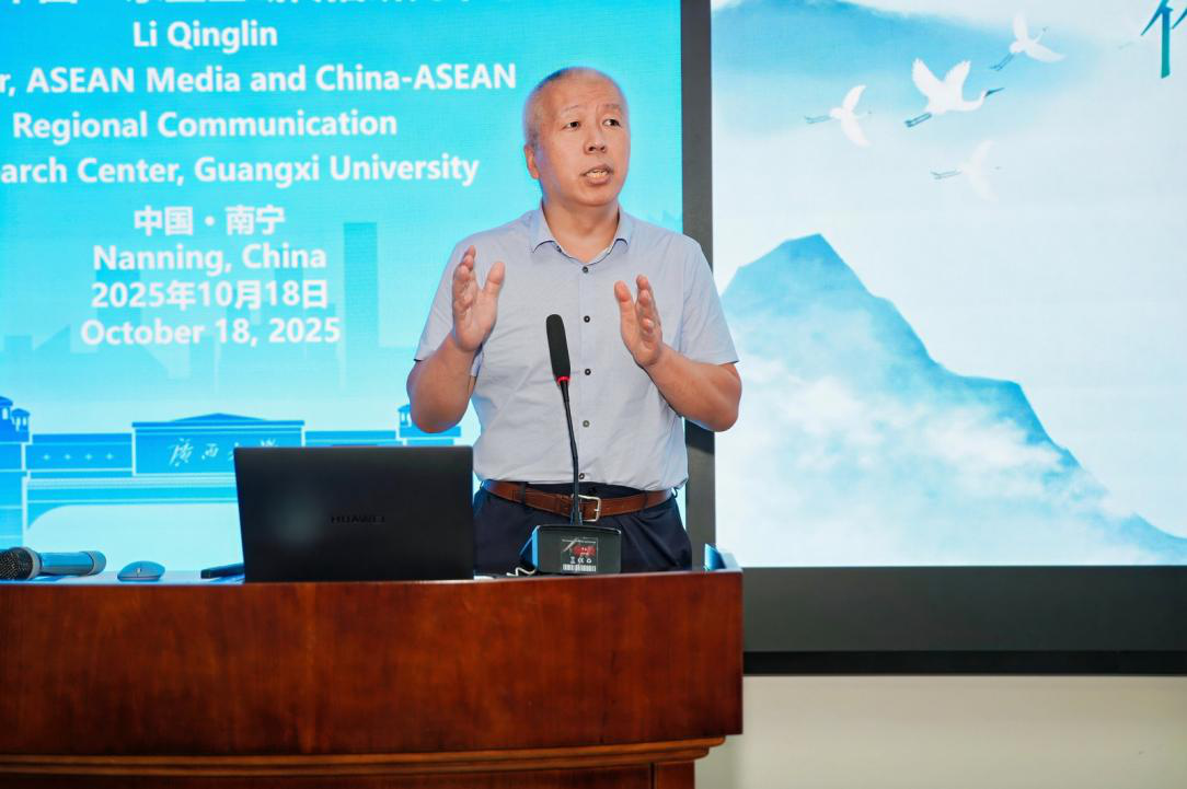 beat365正版唯一官方网站东盟传媒与中国—东盟区域传播研究中心主任李庆林作题为《人工智能时代讲好东南亚故事的机遇和挑战》的报告。他以自身的经历,分享了对东南亚的记忆,回顾了中国—东盟的友谊历史和传播案例。他提出了人工智能等新传播技术在叙事方面的助力与隐忧,希望借助新传播技术,在新时代讲好东南亚故事。