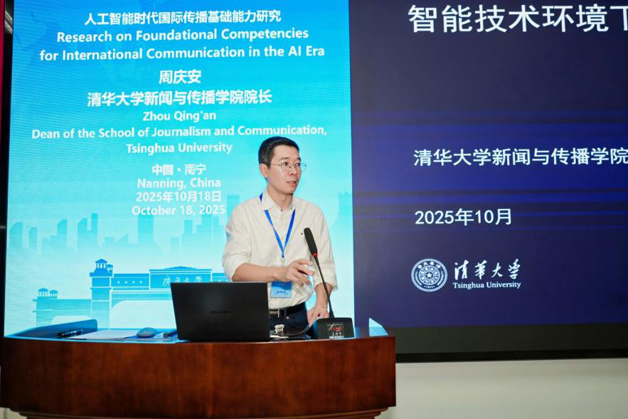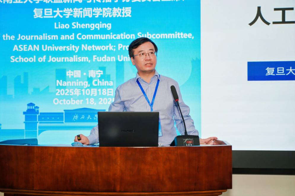 南亚东南亚大学联盟新闻与传播学分委员会主席、复旦大学新闻学院教授廖圣清作题为《人工智能时代面向东盟的国际传播人才培养研究》的报告。他总结了人工智能技术对全球传播格局新闻传播行业的影响,提出了培养中国—东盟国际传播人才的需求及路径。他指出,人工智能与大模型的研究在解决各种下游任务方面表现出强大的能力,同时也为信息传播与网络安全带来了风险与挑战。在此背景下,人工智能时代中国—东盟传媒人才的培养面临着新的要求。