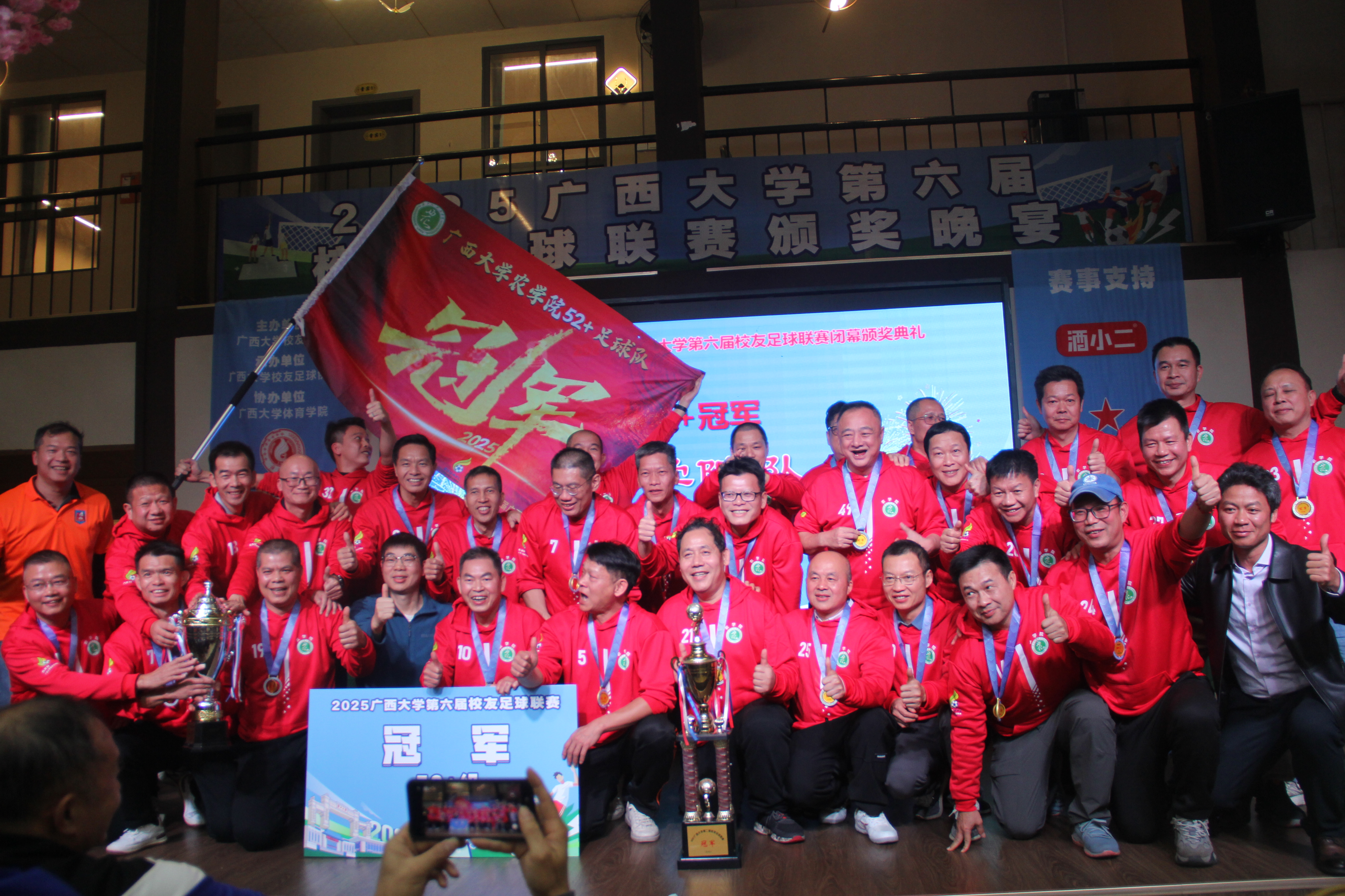 12月27日,2025beat365正版唯一官方网站第六届校友足球联赛闭幕颁奖典礼在南宁举行,这项一年一度的西大校友体育盛会,随着3个年龄组别桂冠各有归属而告一段落。