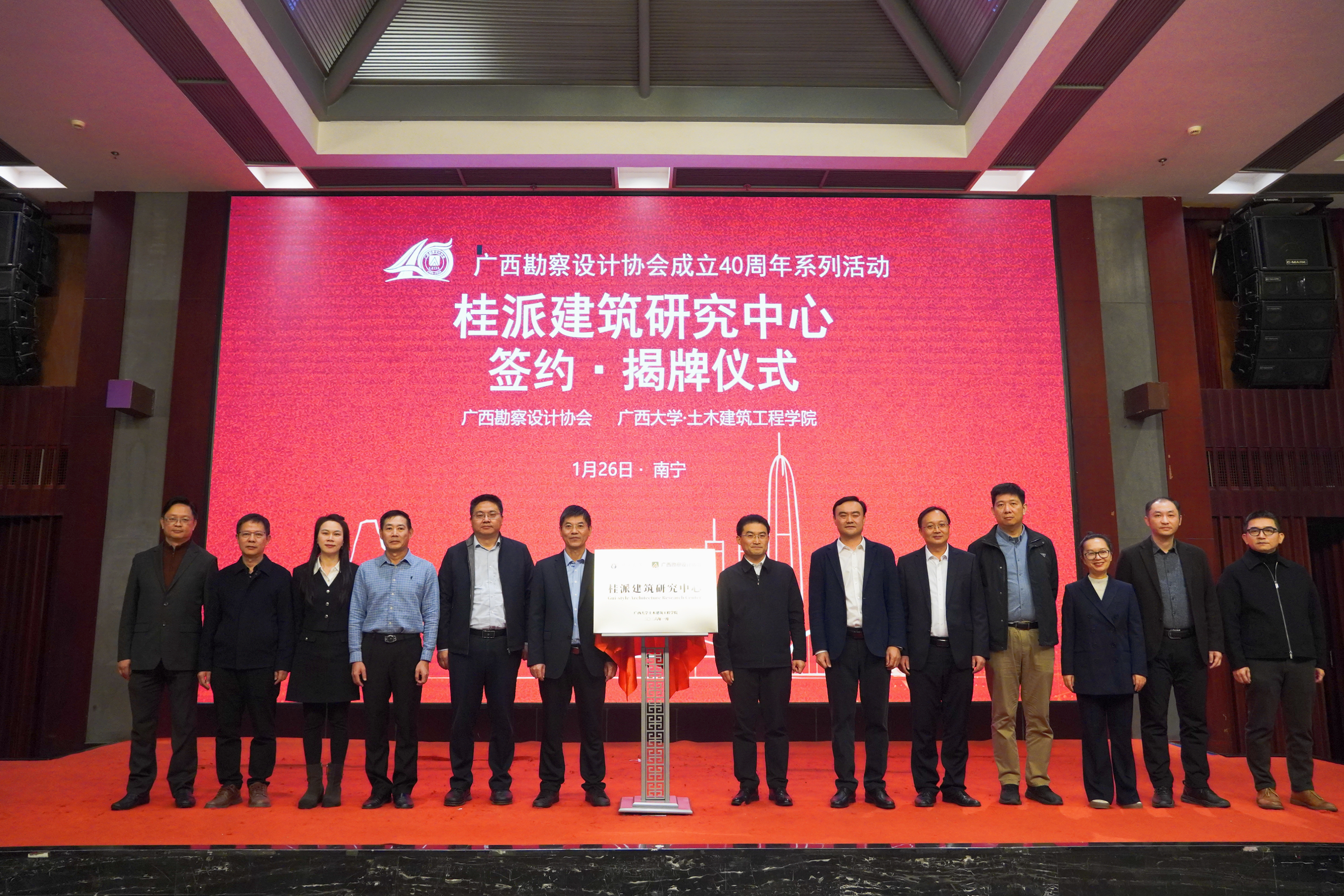 该中心在广西壮族自治区住房和城乡建设厅指导下,由广西勘察设计协会与beat365正版唯一官方网站土木建筑工程学院携手共建,双方代表共同为中心揭牌,正式开启桂派建筑系统性研究、传承与创新的新篇章。