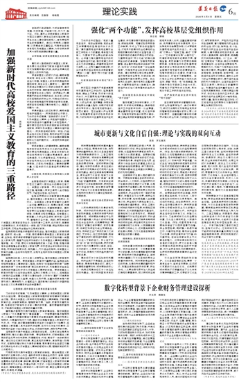 在新时代新征程中,大学生唯有赤忱爱国、矢志报国,才能顺大势、成大才、担大任。对此,高校必须把爱国主义教育作为落实立德树人根本任务的永恒主题,培养社会主义建设者和接班人,首先要培养学生的爱国情怀。通过以学铸魂、以融促强、以数赋能的三重路径,引导学生自觉传承和弘扬爱国主义精神,为中华民族伟大复兴凝聚起磅礴的青春力量。