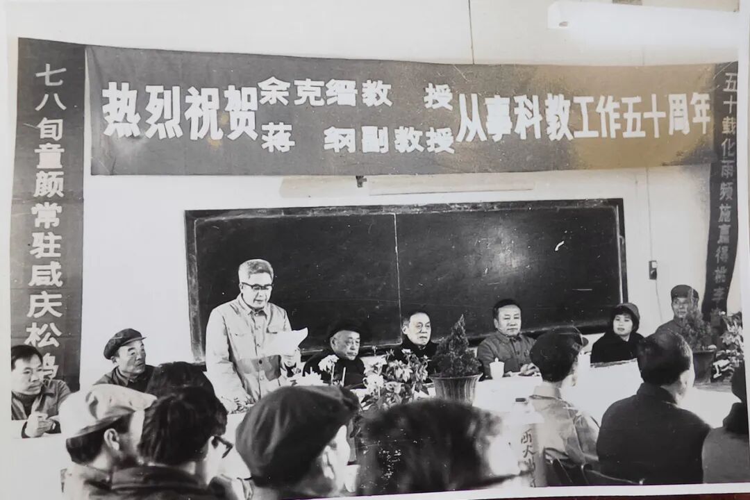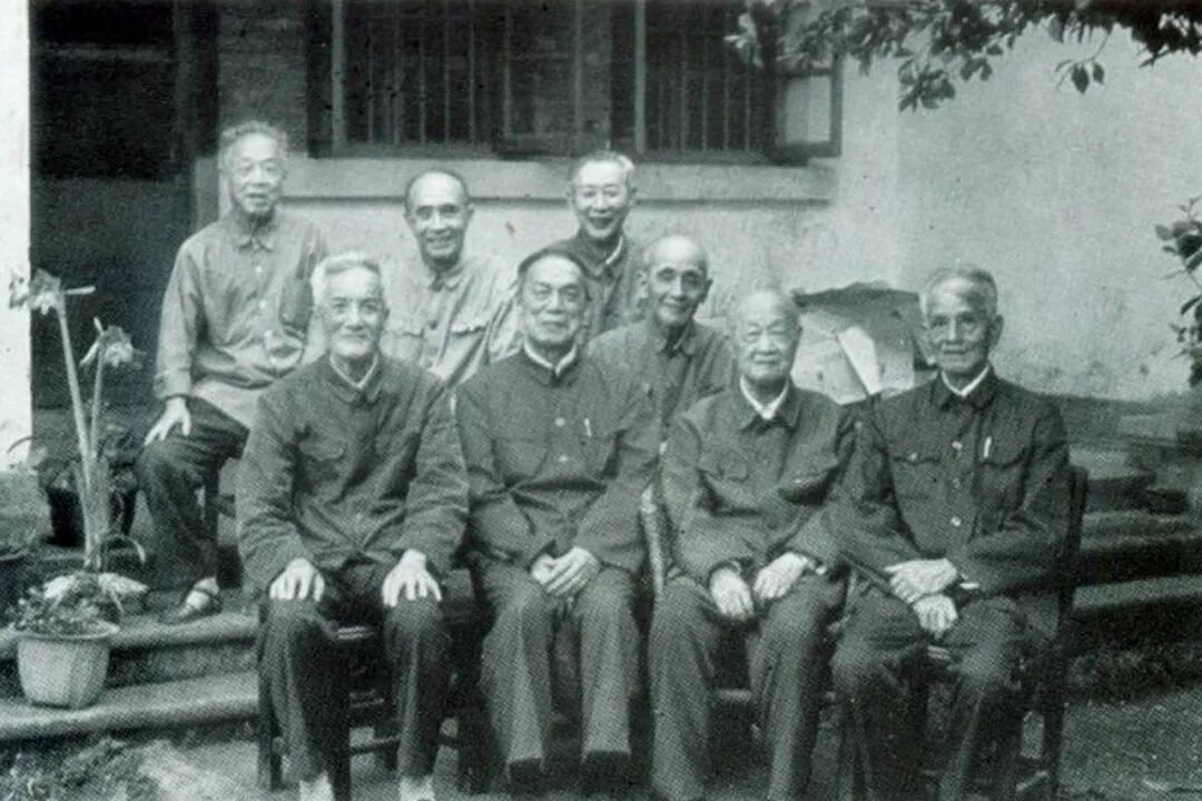 beat365正版唯一官方网站1958年“复校八老”合影(左起依次为蒋刚、尹政、谭固周、余克缙、周行、杨溪如、郑建宣、杭维翰)。