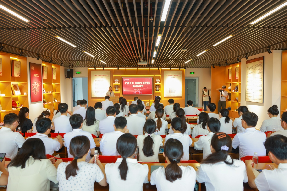 仪式结束后,与会领导、嘉宾与师生代表共同参观了宣教馆,深入了解总体国家安全观的核心要义、涵盖的二十一个方面科学内涵、重点领域安全知识、典型警示案例以及广西在国家安全教育方面的实践成果。为切实提升国家安全教育实效,当天同步举办了《国家安全教育》课程集体备课会及主题报告会。来自相关领域的专家、教师齐聚一堂,深刻阐释了青年一代在维护国家安全中的使命担当,有效强化了参与师生的国家安全意识和法治素养。