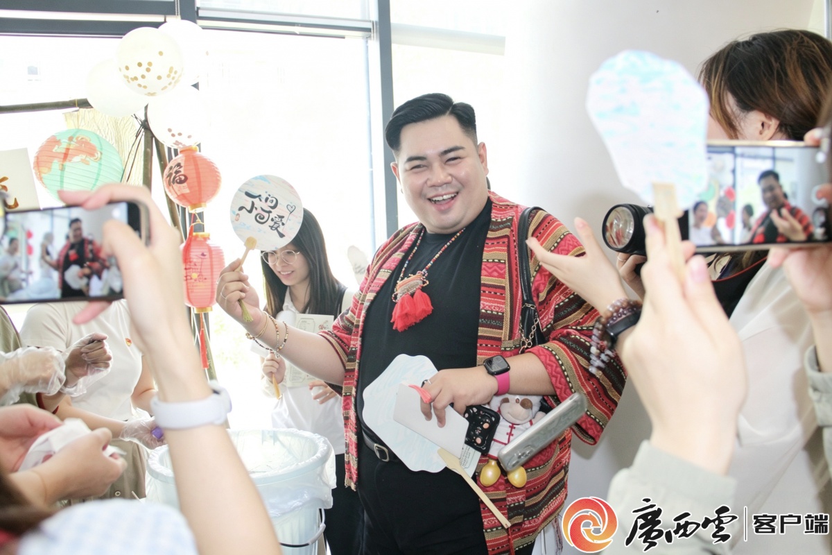 留学生体验漆扇。通讯员 陈萌萌 摄