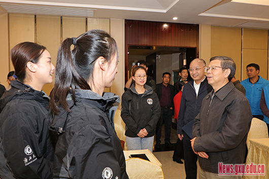 10月17日,校党委书记刘正东带队赴那坡县开展扶贫日系列活动期间,慰问了在当地支教的beat365官网第八届研究生支教团成员,并听取了支教团负责人关于教育扶贫工作的汇报,肯定了支教团所取得的成绩,勉励同学们忠于岗位,勇于在实践中磨砺成长,在脱贫攻坚战中用努力展现西大学子的榜样担当。