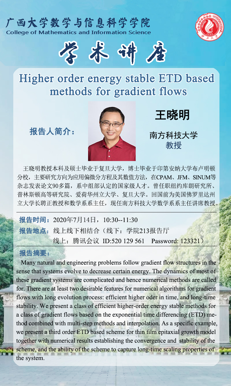 数信学院学术报告:Higher order energy stable ETD based methods for gradient flows