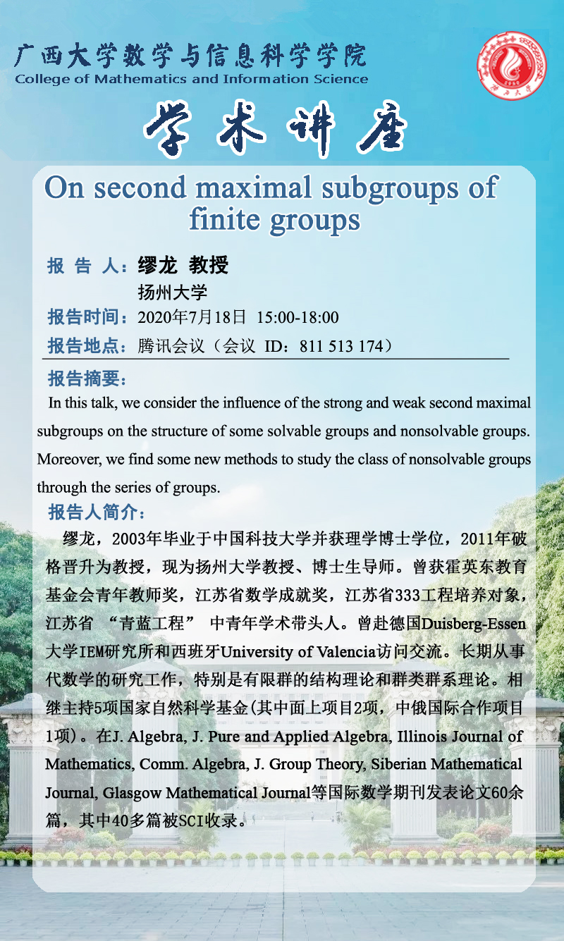 数信学院学术海报:On second maximal subgroups of finite groups