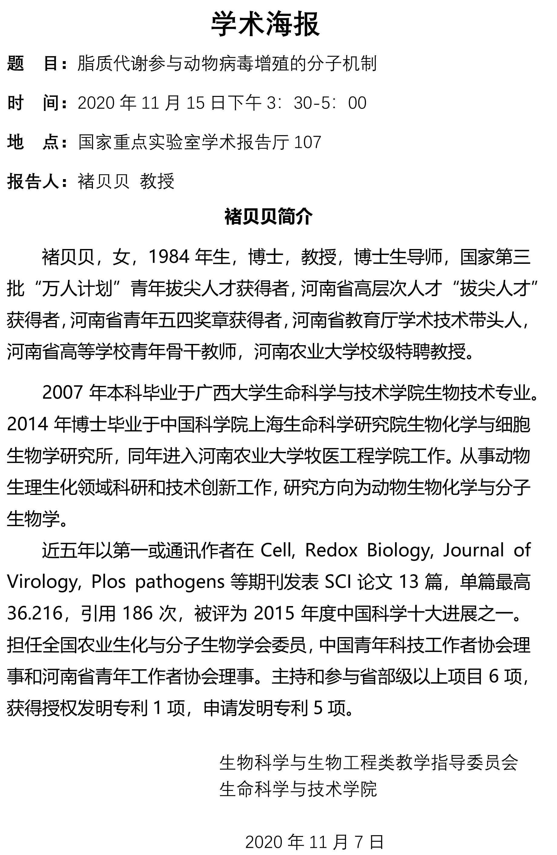 生命科学与技术学院学术报告:脂质代谢参与动物病毒增殖的分子机制